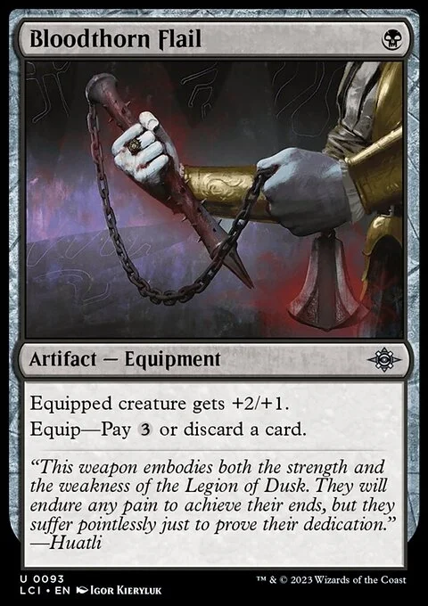 Equipped creature gets +2/+1. Equip—Pay {3} or discard a card.