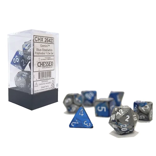 Blue-Steel with White Gemini Polyhedral 7-Die Set Chessex CHX26423