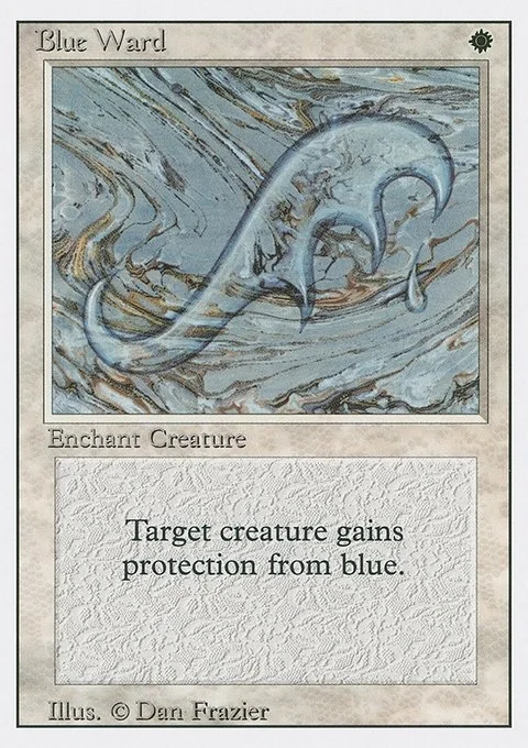 Target creature gains protection from blue.
