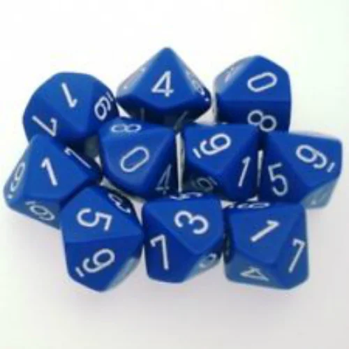 Blue with White Opaque Set of Ten d10 Chessex CHX26206