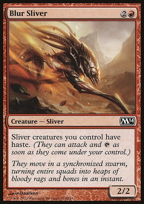 Sliver creatures you control have haste. (They can attack and {T} as soon as they come under your control.)