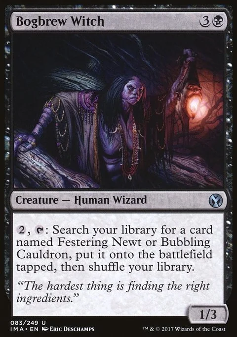 {2}, {T}: Search your library for a card named Festering Newt or Bubbling Cauldron, put it onto the battlefield tapped, then shuffle your library.