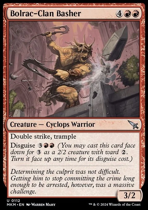 Double strike, trample Disguise {3}{R}{R} (You may cast this card face down for {3} as a 2/2 creature with ward {2}. Turn it face up any time for its disguise cost.)