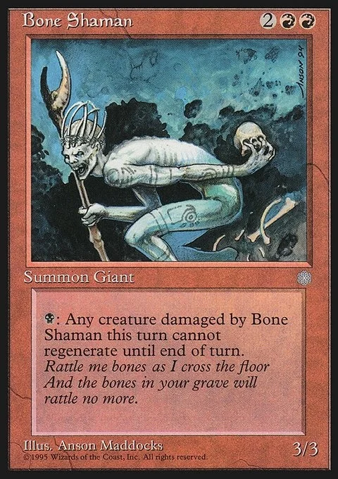 {B}: Until end of turn, Bone Shaman gains "Creatures dealt damage by Bone Shaman this turn can't be regenerated this turn."