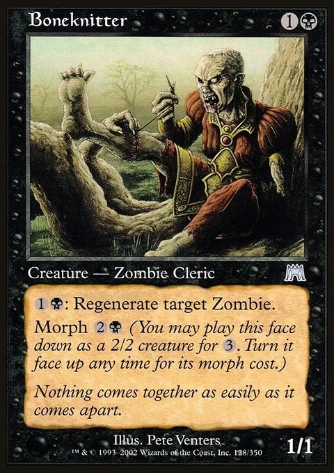 {1}{B}: Regenerate target Zombie. Morph {2}{B} (You may cast this card face down as a 2/2 creature for {3}. Turn it face up any time for its morph cost.)