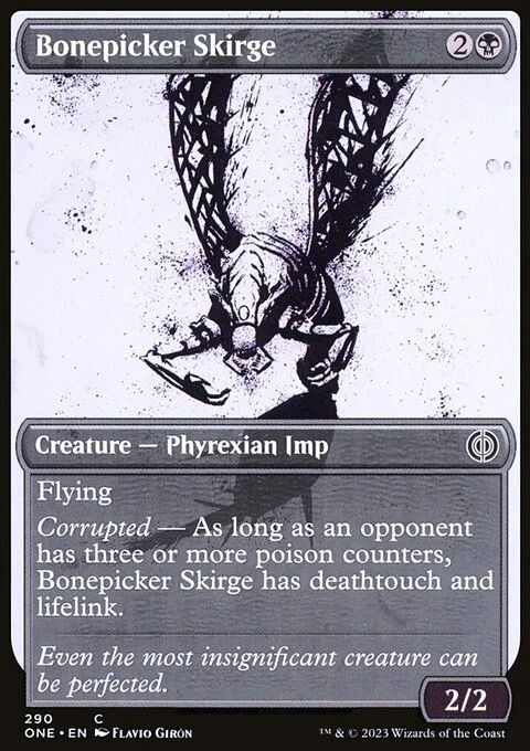 Flying Corrupted — As long as an opponent has three or more poison counters, this creature has deathtouch and lifelink.
