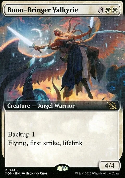 Backup 1 (When this creature enters, put a +1/+1 counter on target creature. If that's another creature, it gains the following abilities until end of turn.) Flying, first strike, lifelink