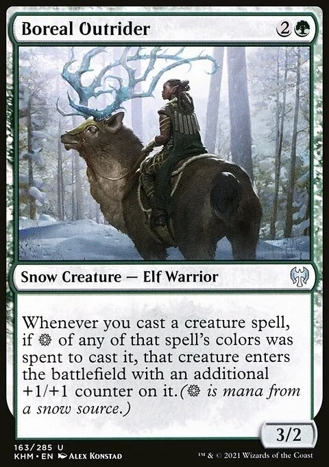 Whenever you cast a creature spell, if {S} of any of that spell's colors was spent to cast it, that creature enters the battlefield with an additional +1/+1 counter on it. ({S} is mana from a snow source.)