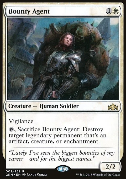 Vigilance {T}, Sacrifice Bounty Agent: Destroy target legendary permanent that's an artifact, creature, or enchantment.