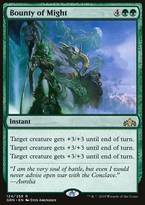 Target creature gets +3/+3 until end of turn. Target creature gets +3/+3 until end of turn. Target creature gets +3/+3 until end of turn.