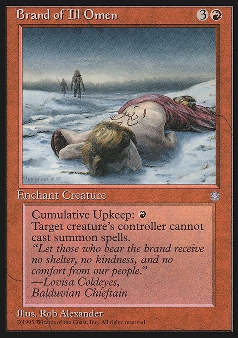 Product Details Cumulative Upkeep: R Target creature’s controller cannot cast summon spells. Rarity:R