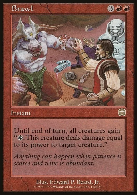 Until end of turn, all creatures gain “T: This creature deals damage equal to its power to target creature.”