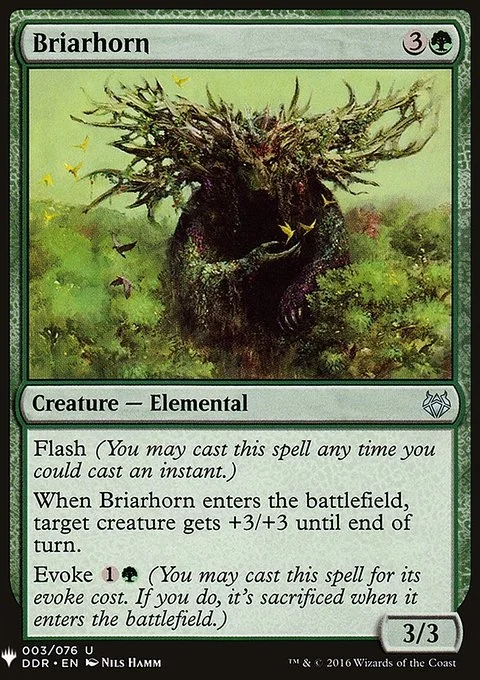 Flash When this creature enters, target creature gets +3/+3 until end of turn. Evoke {1}{G} (You may cast this spell for its evoke cost. If you do, it's sacrificed when it enters.)
