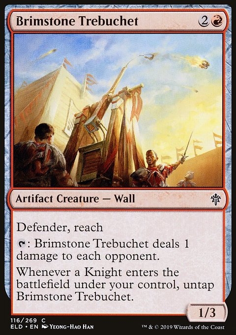 Defender, reach {T}: This creature deals 1 damage to each opponent. Whenever a Knight you control enters, untap this creature.