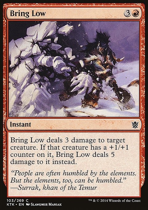 Bring Low deals 3 damage to target creature. If that creature has a +1/+1 counter on it, Bring Low deals 5 damage to it instead.