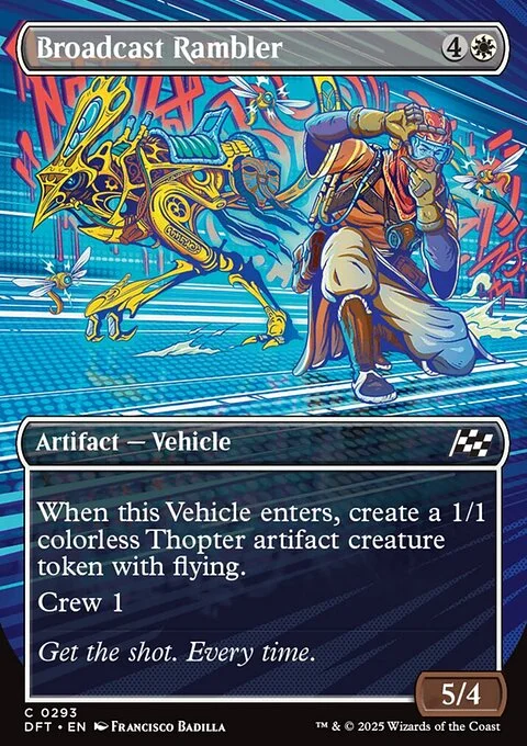 When this Vehicle enters, create a 1/1 colorless Thopter artifact creature token with flying. Crew 1 (Tap any number of creatures you control with total power 1 or more: This Vehicle becomes an artifact creature until end of turn.)