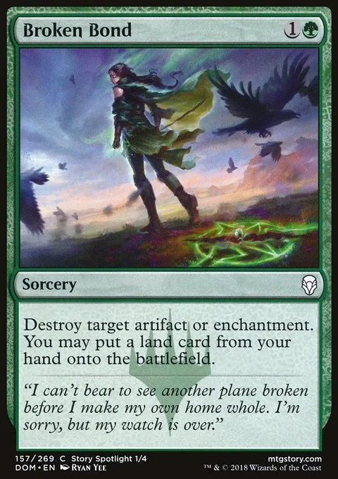 Destroy target artifact or enchantment. You may put a land card from your hand onto the battlefield.