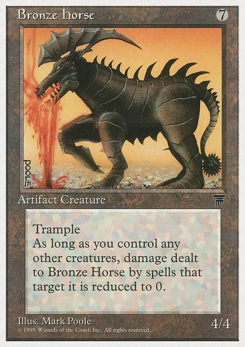 TrampleAs long as you control any other creatures, damage dealt to Bronze Horse by spells that target it is reduced to 0.