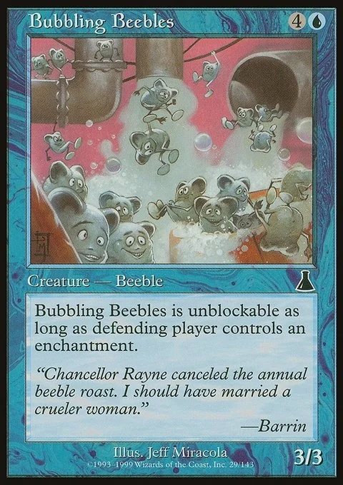 Bubbling Beebles can't be blocked as long as defending player controls an enchantment.