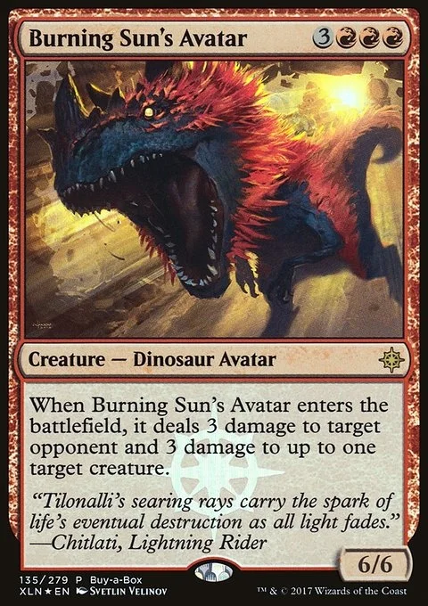 When Burning Sun's Avatar enters the battlefield, it deals 3 damage to target opponent or planeswalker and 3 damage to up to one target creature.