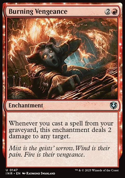 Whenever you cast a spell from your graveyard, Burning Vengeance deals 2 damage to any target.