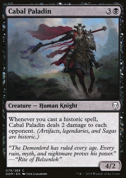 Whenever you cast a historic spell, this creature deals 2 damage to each opponent. (Artifacts, legendaries, and Sagas are historic.)