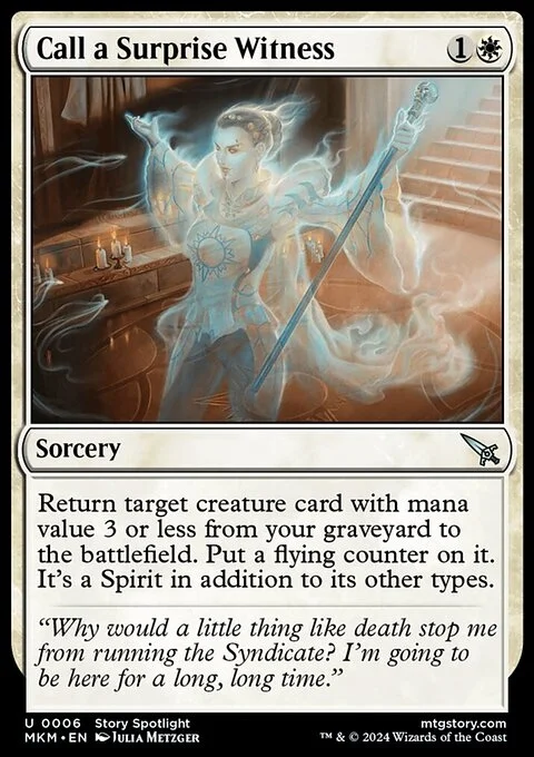 Return target creature card with mana value 3 or less from your graveyard to the battlefield. Put a flying counter on it. It's a Spirit in addition to its other types.