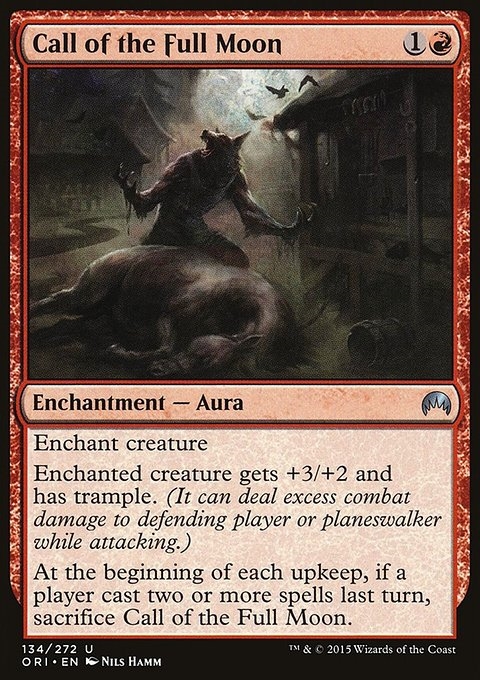 At the beginning of each upkeep, if a player cast two or more spells last turn, sacrifice Call of the Full Moon.