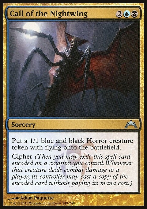 Create a 1/1 blue and black Horror creature token with flying. Cipher (Then you may exile this spell card encoded on a creature you control. Whenever that creature deals combat damage to a player, its controller may cast a copy of the encoded card without paying its mana cost.)