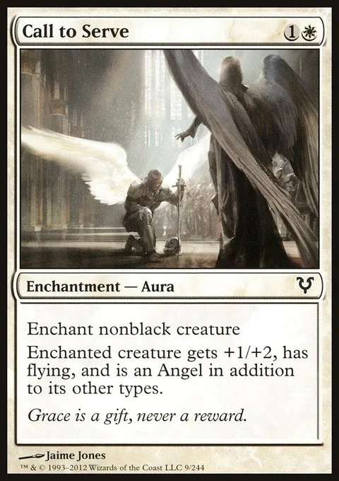 Enchant nonblack creature Enchanted creature gets +1/+2, has flying, and is an Angel in addition to its other types.