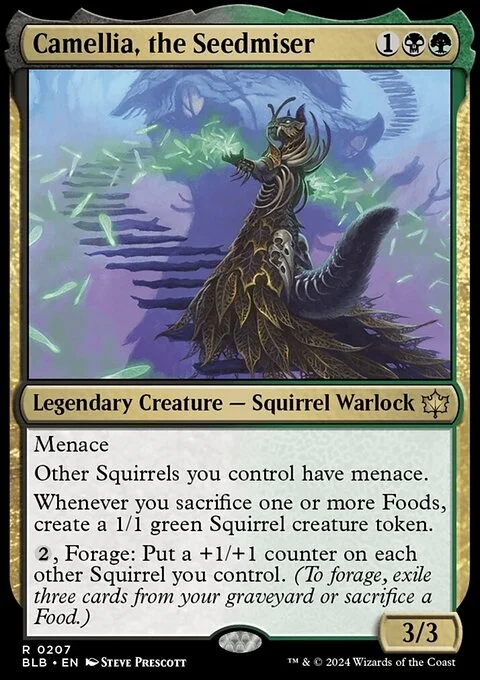 {2}, Forage: Put a +1/+1 counter on each other Squirrel you control. (To forage, exile three cards from your graveyard or sacrifice a Food.)