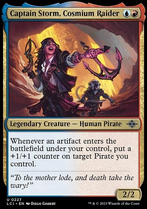 Whenever an artifact enters the battlefield under your control, put a +1/+1 counter on target Pirate you control.