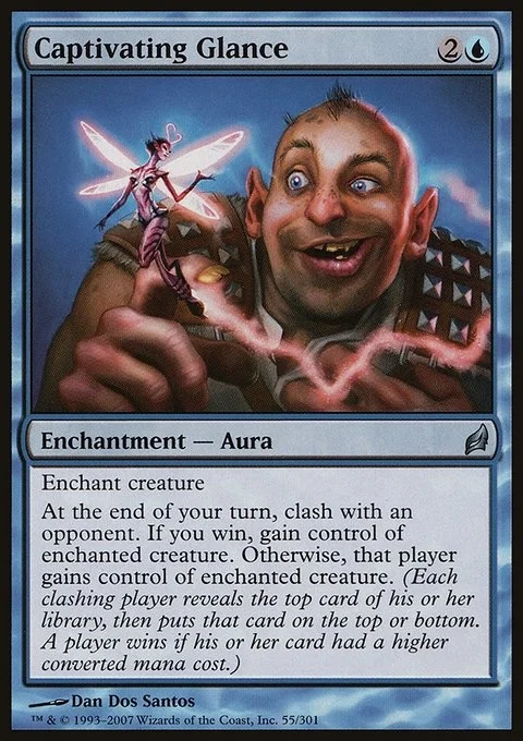 At the beginning of your end step, clash with an opponent. If you win, gain control of enchanted creature. Otherwise, that player gains control of enchanted creature. (Each clashing player reveals the top card of their library, then puts that card on the top or bottom. A player wins if their card had a higher mana value.)