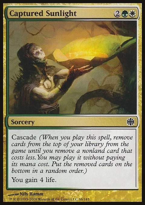 Cascade (When you cast this spell, exile cards from the top of your library until you exile a nonland card that costs less. You may cast it without paying its mana cost. Put the exiled cards on the bottom in a random order.) You gain 4 life.
