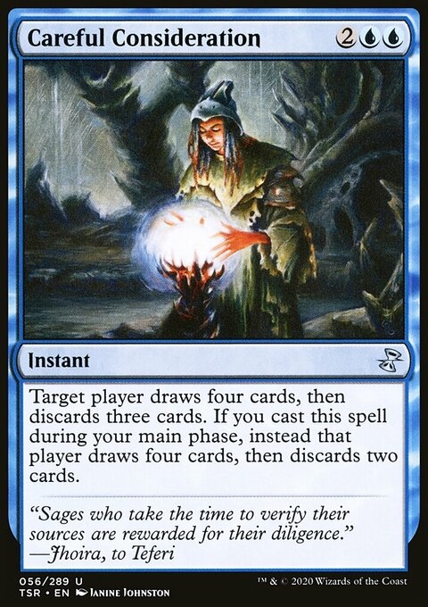 Target player draws four cards, then discards three cards. If you cast this spell during your main phase, instead that player draws four cards, then discards two cards.