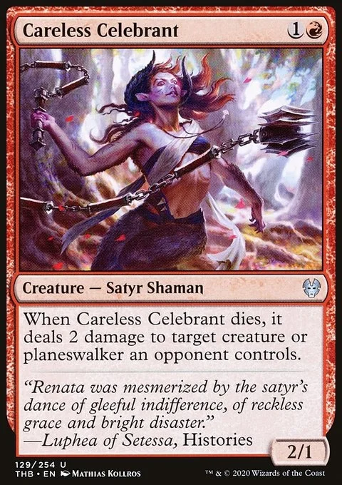When Careless Celebrant dies, it deals 2 damage to target creature or planeswalker an opponent controls.