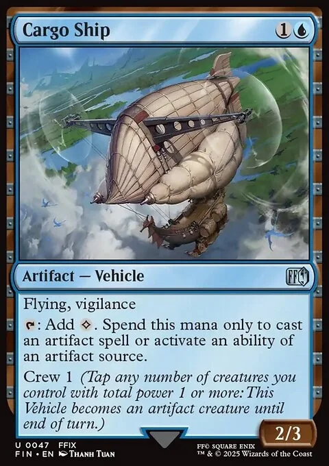 Flying, vigilance {T}: Add {C}. Spend this mana only to cast an artifact spell or activate an ability of an artifact source. Crew 1 (Tap any number of creatures you control with total power 1 or more: This Vehicle becomes an artifact creature until end of turn.)