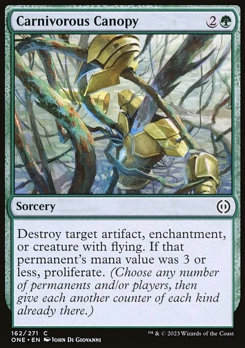 Destroy target artifact, enchantment, or creature with flying. If that permanent's mana value was 3 or less, proliferate. (Choose any number of permanents and/or players, then give each another counter of each kind already there.)