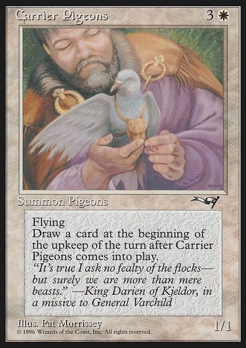 Flying When Carrier Pigeons enters the battlefield, draw a card at the beginning of the next turn's upkeep.