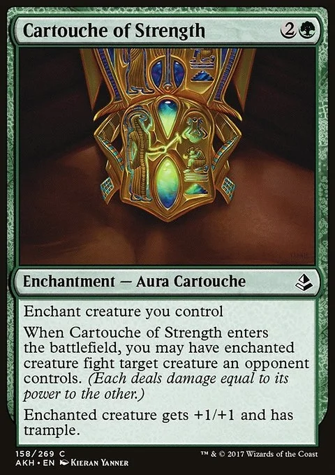 Enchant creature you control When this Aura enters, you may have enchanted creature fight target creature an opponent controls. (Each deals damage equal to its power to the other.) Enchanted creature gets +1/+1 and has trample.