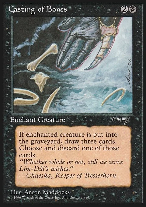 Enchant creature When enchanted creature dies, draw three cards, then discard one of them.