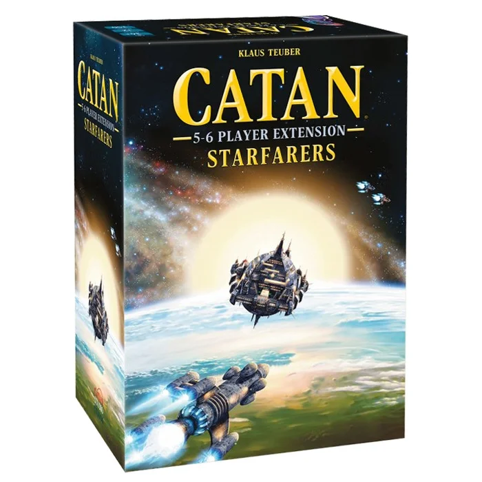 Adds up to two additional players to CATAN – Starfarers for an even more epic race to explore and settle the galaxy. This extension not only adds new player pieces, motherships, and additional space sectors, but also introduces the mysterious alien civilization — The Travelers. Players can strike up trade alliances with the Travelers to benefit from their super- natural powers!