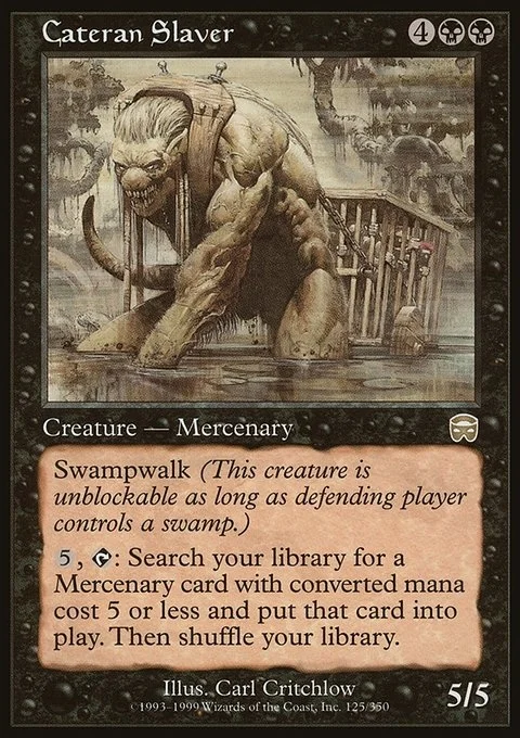 5, T: Search your library for a Mercenary card with converted mana cost 5 or less and put that card into play. Then shuffle your library.