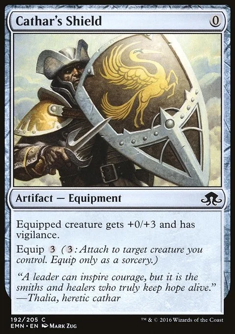 Equipped creature gets +0/+3 and has vigilance. Equip {3} ({3}: Attach to target creature you control. Equip only as a sorcery.)