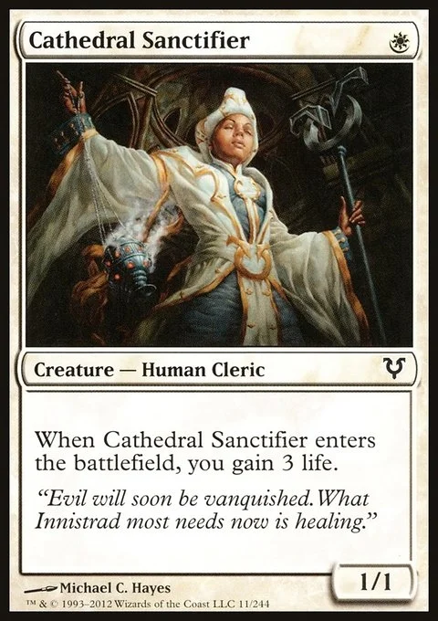 When Cathedral Sanctifier enters the battlefield, you gain 3 life.