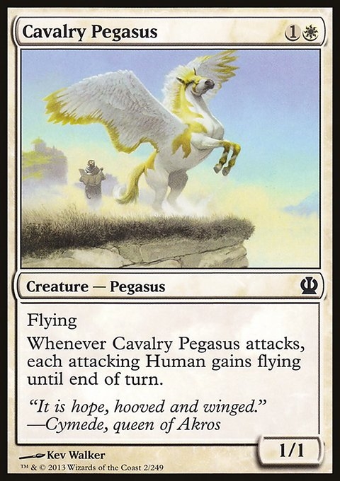 Flying Whenever Cavalry Pegasus attacks, each attacking Human gains flying until end of turn.