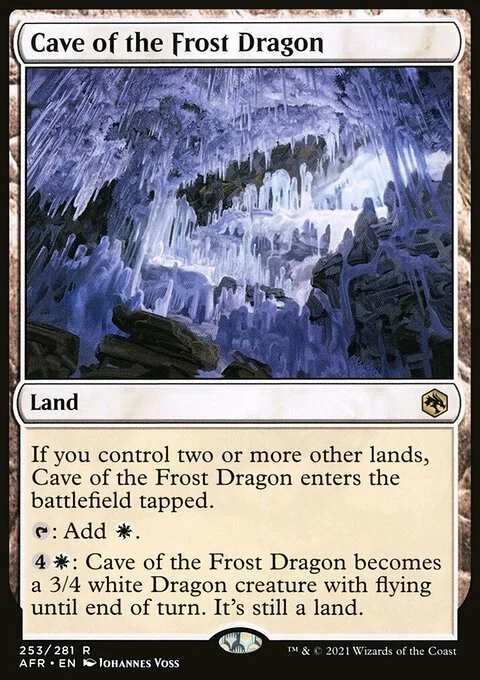If you control two or more other lands, this land enters tapped. {T}: Add {W}. {4}{W}: This land becomes a 3/4 white Dragon creature with flying until end of turn. It's still a land.