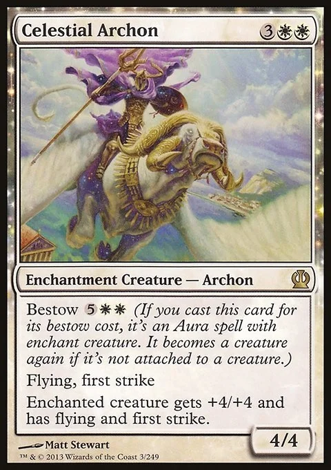 Bestow {5}{W}{W} (If you cast this card for its bestow cost, it's an Aura spell with enchant creature. It becomes a creature again if it's not attached to a creature.)