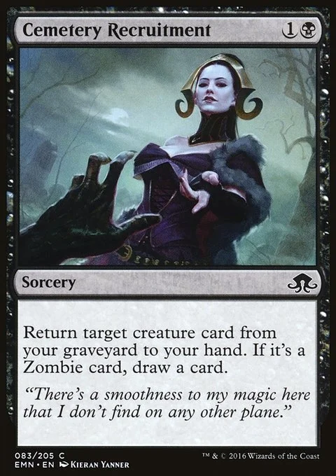 Return target creature card from your graveyard to your hand. If it's a Zombie card, draw a card.
