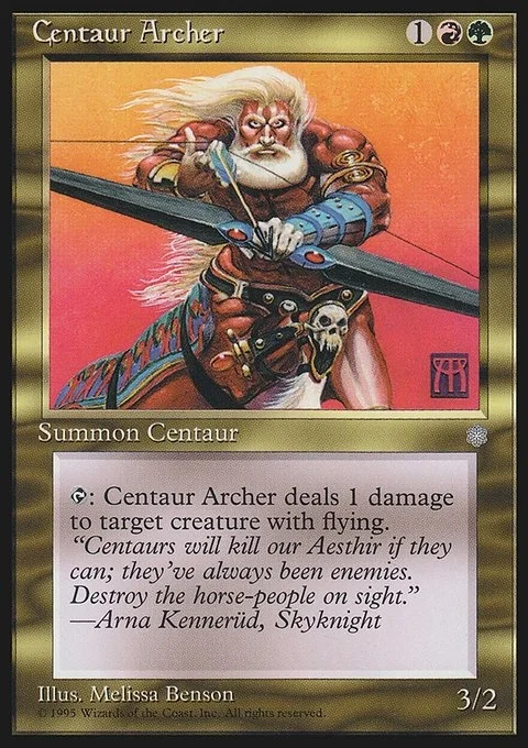 T: Centaur Archer deals 1 damage to target creature with flying.